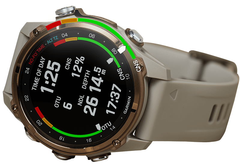 Garmin Firstbeat のテクノロジーを応用し、睡眠、運動、ストレス、時差ぼけなどの生活習慣をもとにダイビングに向けて体がどれだけ準備できているかを表示します。