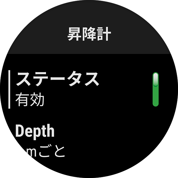特定の深度または深度間隔 (10 メートルごとなど) に到達したときにアラートを設定したり、中性浮力や目標深度のリマインダーを設定したりできます。