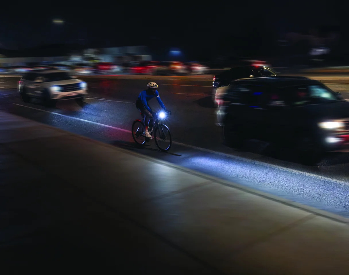 互換性のあるサイクルコンピューター「Edge」とのペアリングで、スピードとライトの状態に合わせて、手元で可変ライトモードおよび自動輝度コントロール設定が可能。輝度だけでなく照射角もコントロールし、対向車および歩行者、他のライダーの視界の保護も実現。