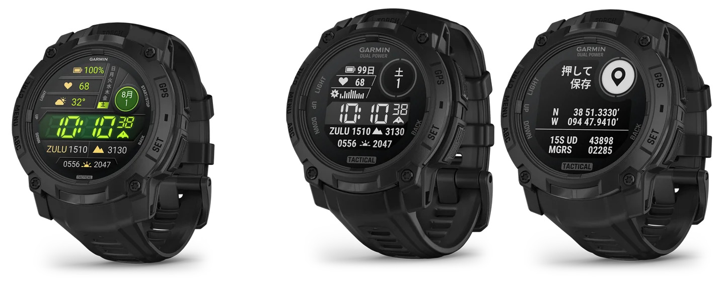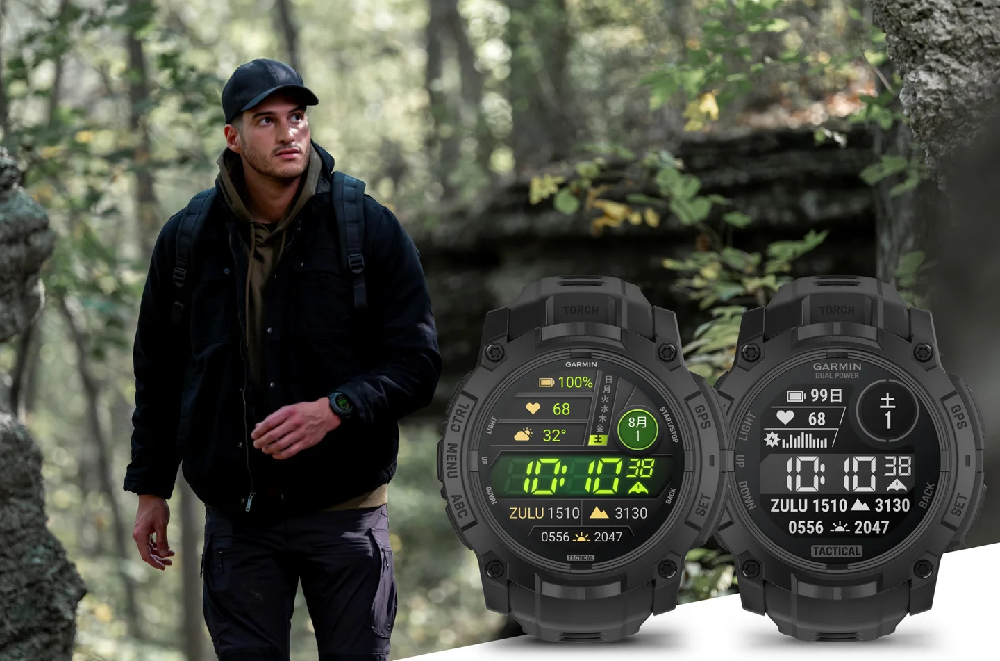 この度、国内外のミリタリー関係者やミリタリーウォッチファンから熱い信頼を得るGarminのタクティカル機能を搭載した『Instinct 3 Tactical』が最新モデルとして登場。高輝度とコントラストで見やすさを追求したAMOLEDディスプレイを搭載した『Instinct 3 Tactical AMOLED』(ケース径50mm/1機種)と、ソーラー充電機能を備えた『Instinct 3 Dual Power Tactical』(ケース径50mm、45mm/2機種)を展開します。