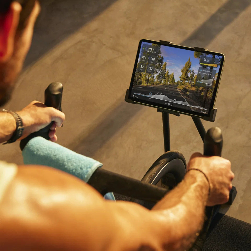 ダイナミックフォークマウントによりハンドルを回すだけでアプリ内のルートを切り替え可能。同じアプリを使用する友人とつながれば、室内にいながらより臨場感のあるグループライド体験もお楽しみいただけます。